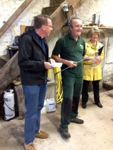 Despite his nearly year-round schedule, Ulrich Dujardin, center, takes an hour or two each week to teach about his techniques to groups who visit his domain.